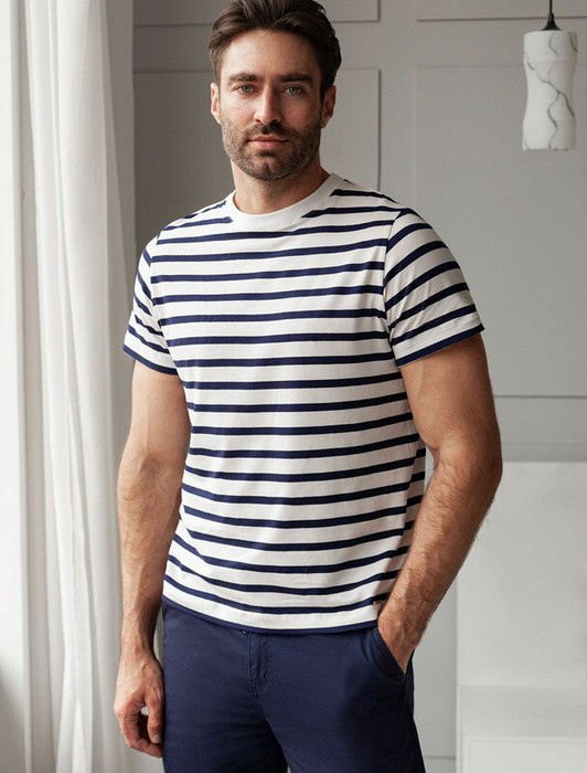Совместные покупки Нижний Тагил Мужская одежда Футболки — 09.04 Vilatte Футболка U49.983 белый-т.синий полоса