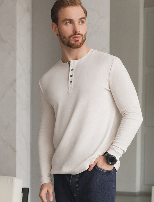 Совместные покупки Нижний Тагил Мужская одежда Футболки — 09.04 Vilatte Лонгслив из премиального хлопка с эластаном U49.054 бежевый меланж