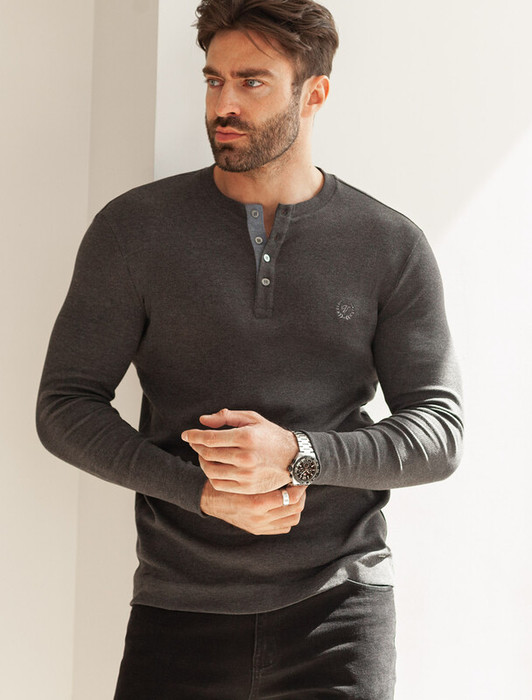 Совместные покупки Нижний Тагил Мужская одежда Футболки — 21.04 Vilatte Лонгслив из премиального хлопка с эластаном U49.054 т.серый меланж