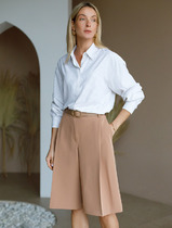 Шорты выполнены из футера двухнитки с эластаном. Модель прямого кроя дополнена боковыми карманами и одним задним карманом.  Пояс выполнен из эластичного трикотажа в рубчик. В пояс вставлен плоский хлопковый шнур в тон изделия с серебристыми наконечниками. Изделие дополнено металлическим логотипом бренда. Сочетается в костюме с жакетом D49.078, джемпером D49.079, D49.080 и футболкой D49.081