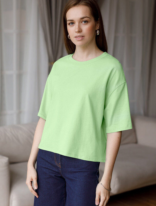 Совместные покупки Нижний Тагил Женская одежда Футболки — 09.04 Vilatte Укороченная футболка силуэта овер-сайз D49.090 фисташковый