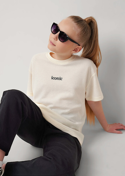 Стильная футболка из фактурного трикотажа станет идеальным дополнением к вашему гардеробу. Модель оверсайз обеспечивает максимальный комфорт. Декоративная вышивка по переду придаёт изделию индивидуальность.