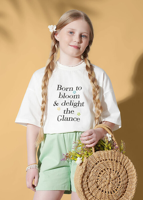 Футболка оверсайз из 100 % хлопка дарит комфорт и свободу движений.На переде-стильный принт, дополненный пришивным декором в виде цветов.Нежная деталь придаёт модели романтичный акцент,делая её отличным выбором для повседневного гардероба юной модницы.