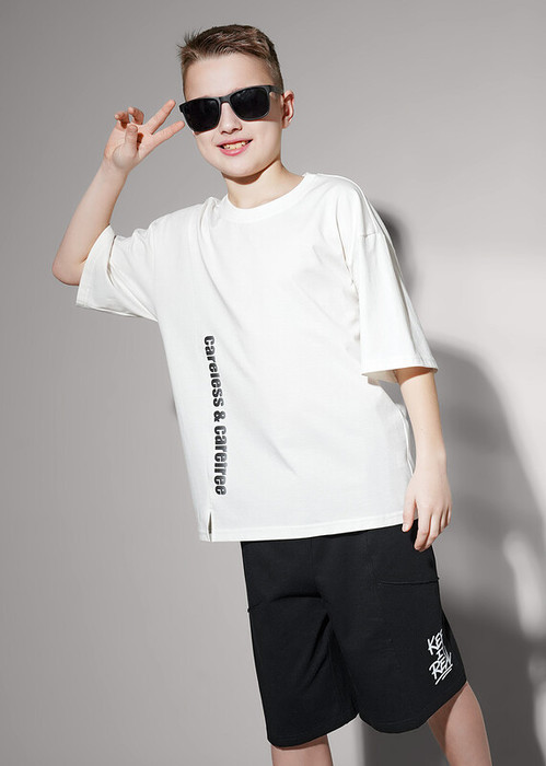 Футболка из 100 % хлопка для подростка — сочетание комфорта и современного дизайна. На переде выполнен стильный рез, дополненный актуальным принтом.