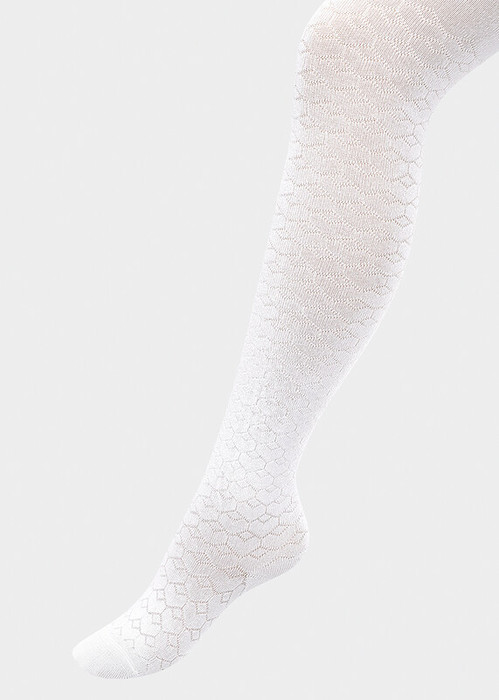 Стильные колготки для девочек, выполненные рельефным рисунком в виде сердечек. Эластичная фактура трикотажа не сковывает движения, колготки хорошо сидят на фигуре.  Данная модель подойдет как для школы, так и для повседневной носки.