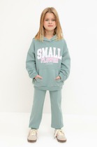 Брюки для девочки из мягкого петельчатого трикотажа. Эластичный пояс на резинке регулируется по ширине с помощью шнурка, по бокам два удобных кармана, внизу эластичные манжеты.