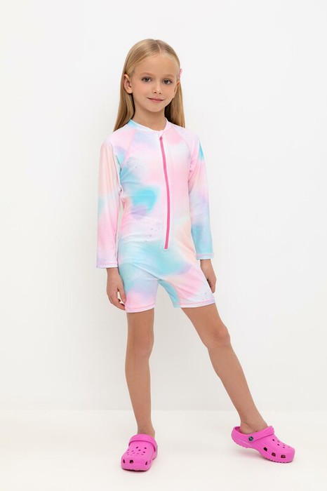 Купальник для девочки. Застегивается спереди на замок. На замке предусмотрена защита для подбородка. Оригинальная набивка выполнена из стойких гипоаллергенных красителей.