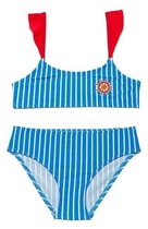 Слитный купальник на лямках для девочки. Украшен оборками по бокам. Оригинальная набивка выполнена из стойких гипоаллергенных красителей.