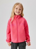 Флисовая куртка для девочки. У изделия высокий воротник и застёжка на молнию с мягкой защитой шеи и подбородка. По бокам два кармана. Оригинальная набивка выполнена из стойких гипоаллергенных текстильных красителей. Куртка сохраняет цвет и форму после многократных стирок.