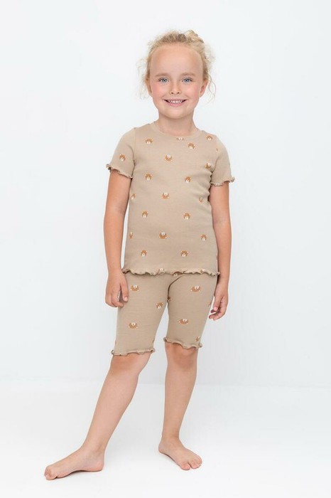 Трикотажная пижама из натурального хлопка . Футболка с короткими втачными рукавами. У шорт в комплекте мягкий, эластичный пояс на резинке. Оригинальная набивка выполнена из стойких, гипоаллергенных текстильных красителей. Комплект сохраняет цвет и форму после многократных стирок. Все трикотажные полотна производятся в соответсвии с нормами Швейцарского сертификата ЭкоТекс.