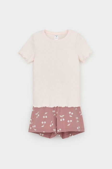 Трикотажная пижама из натурального хлопка. Футболка с короткими втачными рукавами изготовлена из эластичного трикотажа в рубчик. Шорты с эластичной резинкой в поясе выполнены из гладкого трикотажа супрем. Оригинальная набивка выполнена из стойких текстильных гипоаллергенных красителей. Изделие сохраняет цвет и форму после многократных стирок. Все трикотажные полотна производятся в соответсвии с нормами швейцарского сертификата ЭкоТекс.