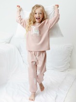 Трикотажная пижама в рубчик из натурального хлопка. Джемпер с длинными втачными рукавами и лосины с эластичной резинкой в поясе. Оригинальная набивка выполнена из стойких текстильных гипоаллергенных красителей. Изделие сохраняет цвет и форму после многократных стирок. Все трикотажные полотна производятся в соответсвии с нормами швейцарского сертификата ЭкоТекс.