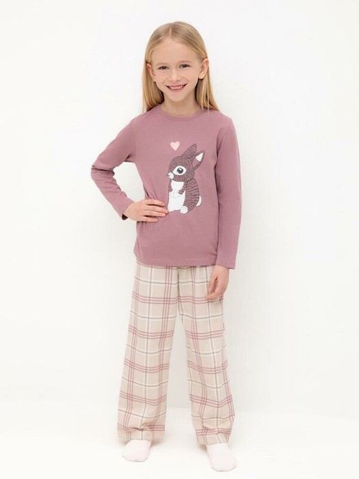 Трикотажная пижама из натурального хлопка. Джемпер с длинными втачными рукавами и прямые брюки с эластичной резинкой в поясе. Оригинальные набивка и принт выполнены из стойких гипоаллергенных текстильных гипоаллергенных красителей. Изделие сохраняет цвет и форму после многократных стирок. Все трикотажные полотна производятся в соответсвии с нормами швейцарского сертификата ЭкоТекс.