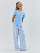 Трикотажная пижама из натурального хлопка для комфортного сна и отдыха. Футболка с короткими спущенными рукавами и прямые брюки с мягкой эластичной резинкой в поясе изготовлены из гладкого трикотажа супрем. Оригинальная набивка и принт выполнены из стойких текстильных гипоаллергенных красителей. Изделие сохраняет цвет и форму после многократных стирок. Все трикотажные полотна производятся в соответствии с нормами швейцарского сертификата ЭкоТекс.