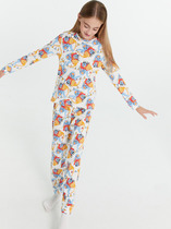 Трикотажная пижама из натурального хлопка для комфортного сна и отдыха. Рубашка на пуговицах с длинными рукавами и широкие брюки с мягкой эластичной резинкой в поясе. Набивной рисунок выполнен из стойких текстильных гипоаллергенных красителей. Изделие сохраняет цвет и форму после многократных стирок. Все трикотажные полотна производятся в соответствии с нормами швейцарского сертификата ЭкоТекс.