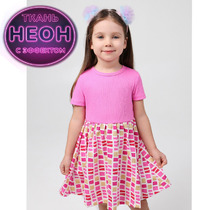 Платье для девочки из эластичного трикотажа в рубчик. Оригинальный рисунок выполнен из стойких текстильных гипоаллергенных красителей. Изделие сохраняет цвет и форму после многократных стирок. Все трикотажные полотна производятся в соответствии с нормами швейцарского сертификата ЭкоТекс.
