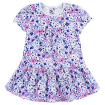 Легкое платье для девочки из мягкого хлопокового муслина со спущенной линией талии, сборкой и застежкой на пуговицы. Изделие сохраняет цвет, форму и фактуру жатости после многократных стирок.