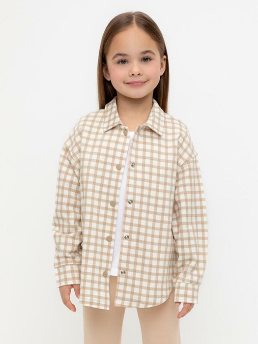 12.04 Crockid рубашка для дев КР 302559/бежевая клетка на сахаре к567