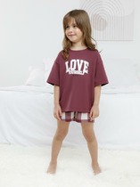 Трикотажный пижамный комплект из натурального хлопка. У футболки короткие рукава со спущенными плечами. Шорты с поясом на резинке. Оригинальная набивка выполнена из стойких, гипоаллергенных текстильных красителей. Все трикотажные полотна производятся в соответствии с нормами Швейцарского сертификата ЭкоТекс.