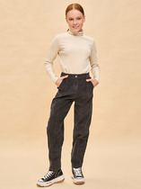 Брюки прямого силуэта, с высокой посадкой. Пояс отрезной  из рибаны, с эластичной тесьмой внутри 50RV. По бокам настрочены лампасы из кулирки. Нижние срезы брюк обработаны швом вподгибку.