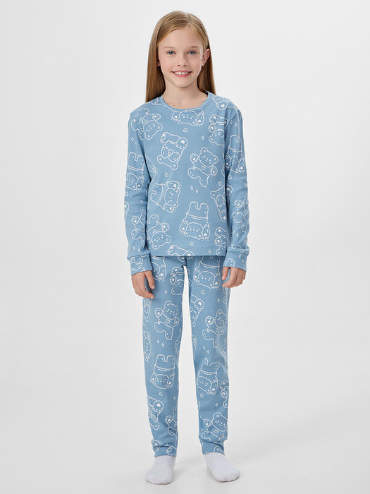 Уютный комплект для девочек, состоящий из джемпера с длинными рукавами и брюк. Джемпер свободного силуэта. Перед и спинка цельнокроеные. Горловина круглой формы из основного полотна. Рукава втачные, низ рукавов с притачными манжетами. Брюки прямые, с притачными манжетами. Пояс с эластичной тесьмой, которая обеспечивает отличную посадку. Стильная и комфортная детская пижама — лучший вариант для прохладного времени года. Широкий размерный ряд, красивые расцветки моделей в линейке. Рекомендуем!