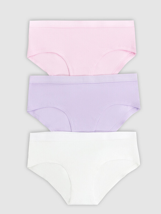 Мультипак (3 шт.) стильных трусиков-шортов из трикотажной рибаны – в мелкий рубчик. Нижние срезы подогнуты, на верхнем срезе –  жаккардовая тесьма. Актуальный выбор!