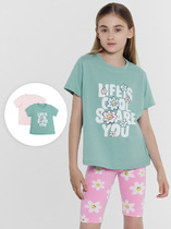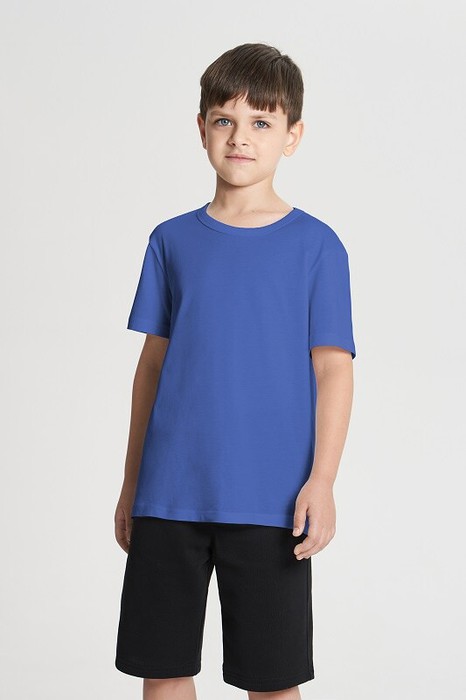 Футболка свободного кроя, втачной рукав. Горловина окантована бейкой из рибаны
