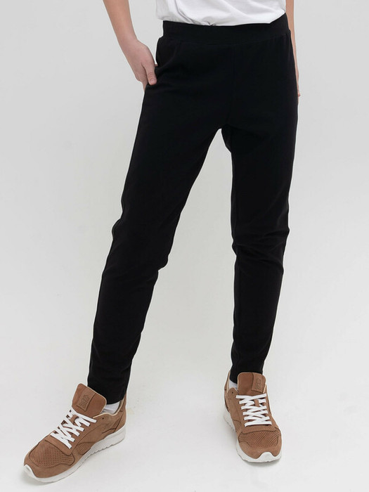 Слегка зауженные книзу, без манжет. Свободный низ брюк можно подвернуть или оставить мягкие складки. И то, и другое смотрится стильно и позволяет брать эти брюки на вырост.