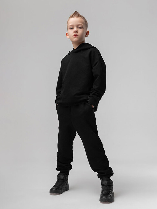 Костюм для детей дошкольного возраста. Толстовка без подкладки, прямого силуэта, на притачном поясе по низу изделия, со спущенным плечом и втачными рукавами с притачной манжетой, с капюшоном. Брюки прямые свободные на притачном поясе с внутренней резинкой, на притачной манжете по низу изделия, с боковыми карманами. Состав: футер двухнитка пике 80% хлопок 20% полиэстер
