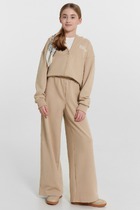 Брюки для девочек, прямого силуэта. Пояс цельнокроеный с втачной эластичной тесьмой RV40. Пояс прострочен двумя отделочными строчками. По переду обработаны карманы в швах. Низ брюк обработан швом в подгибку на двухигольной плоскошовной машине.