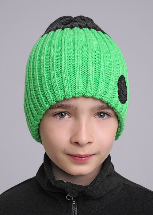 13.01 Clever Шапка детская для мальчика CLE 444215ап зелёный/меланж т.серый