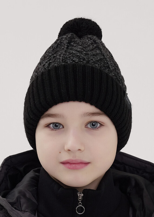 13.01 Clever Шапка детская для мальчика CLE 454456ап флис чёрный/меланж т.серый