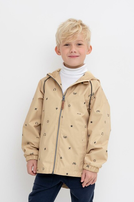 Ветровка для мальчика из мембранной ткани с дополнительной тефлоновой обработкой.  Верхняя мембранная ткань 1000/1000 с тефлоновым покрытием отталкивает воду и грязь и обладает «дышащими» свойствами. Подкладка выполнена 60% хлопка и 40% полиэстера. У изделия предусмотрена защита подбородка. Несъемный капюшон регулируется с помощью эластичного шнура со стопперами. Низ рукавов имеет эластичную резинку для лучшего прилегания. Во всех изделиях верхнего ассортимента для безопасности ребенка предусмотрены светоотражающие элементы.