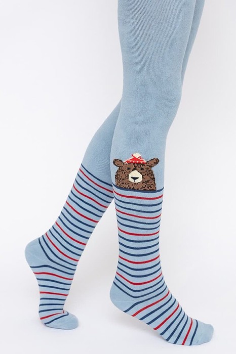 Колготки махровые с рисунком в виде поперечных полосок и медведя. Продуманная конструкция: колготки не скатываются, плотно облегают ножку, не сдавливают в талии, но отлично держит колготки даже на самых активных детях. Стильно и комфортно!