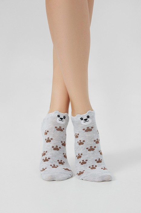 рис.3179 Детский укороченный носок с рисунком в виде лапок и мишек с элементом пикота.