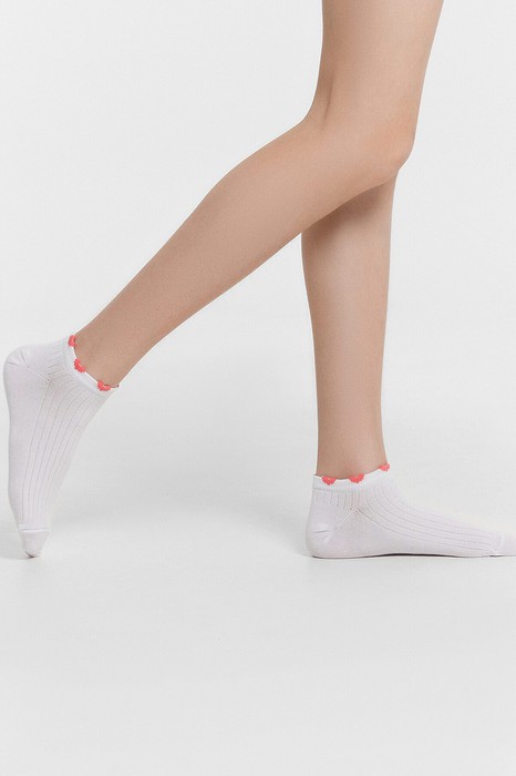 рис.3191 Детские укороченные носки выполненный перекидным переплетением (лапша), с пикотом в виде сердечек на бортике.