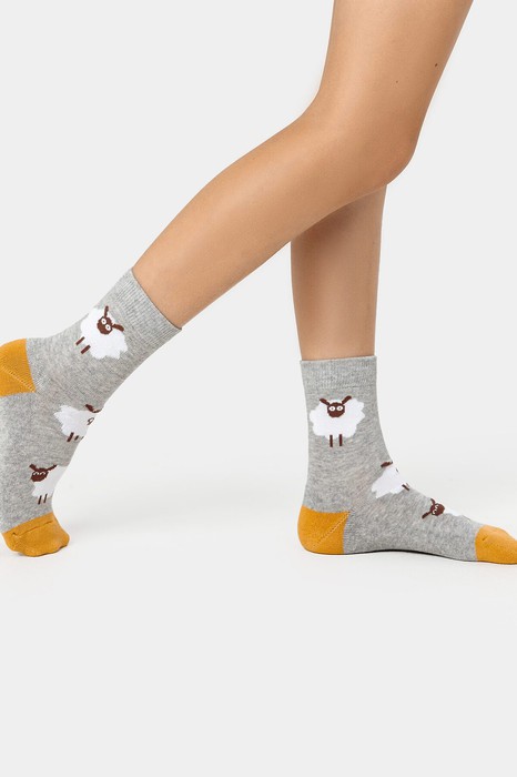 рис.2470 Детский классический носок с плюшевым следом и рисунком в виде барашков
