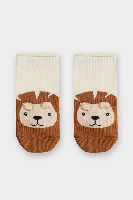 рис.2936 Детские гладкие носки без борта, с рисунком в виде тигренка и цветным мыском.