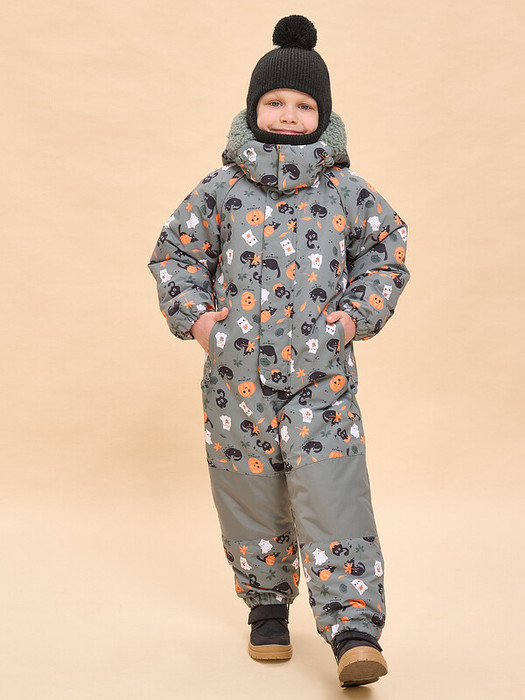 Комбинезон зимний детский из мембранной ткани. Подходит и для мальчиков, и для девочек. Модель свободного объёма с рукавами кроя реглан подарит ребёнку комфорт и не будет стеснять его движений. На внешнюю поверхность материала нанесена водоотталкивающая пропитка (DWR), она задерживает грязь и влагу снаружи — ребёнок не промокнет от снега, а комбинезон легко отстирается. Также есть дополнительная пропитка на внутренней стороне ткани — для более надёжной защиты от промокания. Капюшон двухшовный, что обеспечивает анатомически правильную форму и комфортную посадку по голове. Капюшон не отстегивается, предусмотрена регулировка объема эластичными шнурами с пластиковыми стопперами. Внешний край капюшона декорирован мягким искусственным мехом, по текстуре напоминающим «барашка». Из этого же материала выполнена внутренняя подкладка капюшона, она комфортная, тактильно приятная. Удобная центральная застёжка на тракторную молнию с двумя пуллерами. Тканевый стоппер защищает подбородок от зажима молнией. Фиксирующая строчка предохраняет планку от «заедания» в процессе застёгивания. Комбинезон тёплый — для оптимальной защиты от ветра и холода центральная молния дополнительно закрыта ветрозащитной планкой на кнопках и липучках (велькро). Спинка по талии присборена на внутреннюю резинку — зимний мембранный комбинезон для ребенка безупречно садится по фигуре и не выглядит мешковато. Внутри комбинезона эластичные лямки — есть возможность снимать только верхнюю часть в помещении. Карманы с боковым входом закрываются на молнию, по контуру резиновая заливка — содержимое карманов не промокнет от снега во время активных игр на свежем воздухе. Внутри карманы утеплены мягким флисом. Замок дополнен тканевыми стопперами, что предохраняет его от разрыва. На пуллере эластичный запаянный шнур — ребёнку легко открывать и закрывать даже в варежках. Манжеты рукавов и брючин на комфортных широких резинках, это предохраняет от попадания внутрь снега. На муфтах брюк антискользящая резинка. Комбинезон дополнен съёмными силиконовыми штрипками. Область колен и нижняя часть спинки усилены более плотной тканью — можно смело кататься с горки и ползать на коленках сколько захочется. В каждом изделии нейм-лейбл! Ребёнок не потеряется и не потеряет комбинезон! Световозвращающие канты в проймах переда и спинки — безопасность в тёмное время суток. Модель универсальной расцветки с симпатичным принтом одинаково классно смотрится и на мальчиках, и на девочках. Комбинезон на молнии неприхотлив в уходе — ухаживать согласно указанным на вшивных ярлыках рекомендациям. Изделие выполнено из полиэстера с мембраной — оно не только защищает от холода и влаги, но и хорошо пропускает воздух, давая коже ребёнка дышать. Подкладка из мягкого, тёплого и дышащего флиса (по переду и спинке). В рукавах и штанинах подкладка из тонкого и гладкого полиэстера —  благодаря этому ребенку легко надевать комбинезон, руки и ноги не путаются в рукавах и штанинах, а легко проскальзывают. Зимний комбинезон детский идеален для маленьких детей дошкольного и младшего школьного возраста. Рекомендуемый температурный режим: не ниже минус 25 градусов. В изделии использован один из высокотехнологичных утеплителей — феллекс 260 г/м2. Дышащие свойства мембраны: не менее 3000 г/м2/сут. 