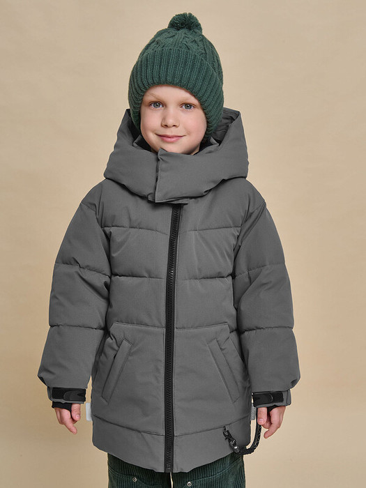 Пуховик зимний для мальчика, модель из мембранной ткани. На внешнюю поверхность материала нанесена водоотталкивающая пропитка (DWR), она задерживает грязь и влагу снаружи — ребёнок не промокнет от снега, а пуховик без проблем отстирается. Также есть дополнительная пропитка на внутренней стороне ткани — для оптимальной защиты от промокания. Куртка прямого оверсайз-силуэта подходит для любого типа фигуры. Капюшон с двумя швами, что обеспечивает анатомически правильную форму и комфортную посадку по голове. Капюшон не отстегивается, он красивый и объёмный за счёт дополнительного наполнителя в камерах, предусмотрена регулировка его объема эластичными шнурами с пластиковыми стопперами. По низу рукавов манжета, которая дополнительно застёгивается силиконовой патой на липучке (велькро) — удобно регулировать объем, быстро и просто застёгивать и расcтёгивать. Внутри рукава ветрозащитная манжета из трикотажного полотна с прорезью для большого пальца, которая позволяет придерживать рукав при надевании перчаток. Центральная застёжка на прочную тракторную молнию. Тканевый стоппер защищает подбородок от зажима молнией. Фиксирующая строчка предохраняет планку от «заедания» в процессе застёгивания. Зимний пуховик тёплый — для наилучшей защиты от ветра и холода центральная молния дополнительно закрыта внутренней ветрозащитной планкой. По низу объём изделия регулируется эластичным шнуром со стопперами. Пуховик на мальчика спереди дополнен карманами-кенгуру застёжками на магниты — ребёнку просто и быстро открывать и закрывать даже в варежках. Карманы внутри утеплены мягким флисом. Также есть дополнительные карманы на молнии с планкой — удобно пользоваться. Пуховик в трендовом стиле стритвир — для тех, кто понимает в моде. На левом кармане оригинальный декор — навесной шнур контрастного цвета. Он крепится с помощью двух карабинов за петельки из основной ткани в кармане и боковом шве куртки — при желании его можно снять. В каждой куртке нейм-лейбл! Ребёнок не потеряется и не потеряет куртку! На спинке и в боковых швах расположены светоотражающие  элементы — безопасность в тёмное время суток. Изделие неприхотливо в уходе — ухаживать согласно указанным на вшивных ярлыках рекомендациям. Пуховик однотонный, без принта. Куртка выполнена из полиэстера с мембраной — она не только отлично защищает от холода и влаги, но и хорошо пропускает воздух, позволяя коже ребёнка дышать. Подкладка из мягкого, тёплого и дышащего флиса (по стану, внутреннему воротнику и в капюшоне). В рукавах подкладка из тонкого и гладкого полиэстера —  благодаря этому ребенку легко надевать куртку, руки не путаются в рукавах, а словно проскальзывают в них. Куртка выполнена в красивых трендовых цветах, которые хорошо комбинируются с различными брюками. Куртка зимняя оверсайз идеальна для маленьких мальчиков дошкольного и младшего школьного возраста, а также подростков. Рекомендуемый температурный режим: не ниже минус 30 градусов. Утеплитель: экопух. В рукавах дополнительный слой тонкого синтепона  — для максимального тепла и комфорта. Куртка на мальчика подходит для носки в детский сад, школу, для прогулок и отдыха.