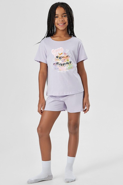 Комплект для девочки, состоит из футболки с короткими рукавами и шорт из натурального хлопка. Подходит для сна и отдыха. Материал очень приятный к телу, хорошо пропускает воздух, что позволяет чувствовать себя комфортно даже в жаркую погоду. Идеальный выбор детской одежды для дома. Стильно, красиво, комфортно. Футболка декорирована интересным принтом, шортики однотонные. Широкий размерный ряд, базовые и яркие расцветки, модели с принтами, рисунками и печатями. Купите детскую пижаму для девочки от Mark Formelle, порадуйте ребенка красивым и стильным подарком!