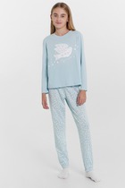 Комфортная хлопковая пижама из трикотажного интерлока. Включает классический лонгслив и брюки прямого силуэта. Круглая горловина, втачные рукава на широких манжетах, как и брючки. Отличная пижама – уютная, натуральная, стильная