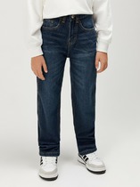 Джинсы, утепленные флисом. Посадка comfort fit – свободный крой брючин. Эластичный пояс со шнурком.