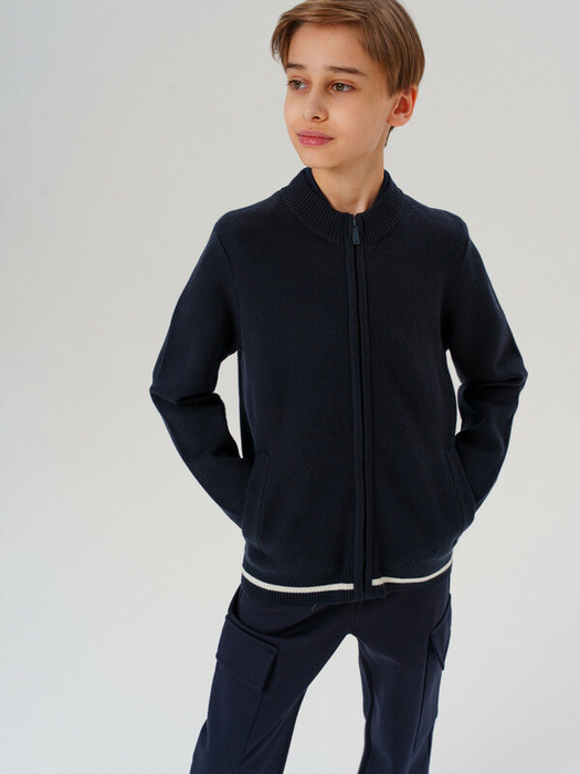 Стильный школьный темно-синий кардиган на молнии для мальчика-подростка.