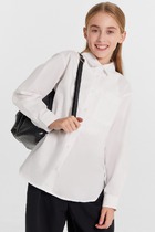 Стильная школьная рубашка прямого кроя — идеальный выбор для торжественных мероприятий и повседневной школьной носки.