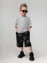 Шорты для девочек свободного силуэта из ткани. На детали переда карманы с отрезным бочком. Пояс отрезной с эластичной тесьмой внутри, на поясе пробиты петли, вставлен шнур из основного полотна. Шов стачивания пояса распошит. Шорты немного расширяются к низу. Длина выше колена.