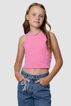 Бюстье из трикотажной кулирки. Горловина округлой формы. Спинка фигурная, как в спортивном топе. Все срезы окантованы бейкой из основного полотна. По нижнему срезу настрочена жаккардовая эластичная тесьма.