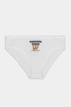 Нижние срезы трусов обработан швом вподгибку. Деталь переда и сидения соединены боковым швом. Ластовица из кулирного полотна SJ-6 (SJ-009.01.170),95% хлопок; 5% эластан , 180 см, 170 гр/м?. Верхний срез трусов с внутренней эластичной тесьмой (внутренняя резина 25RV), ширина 25мм.