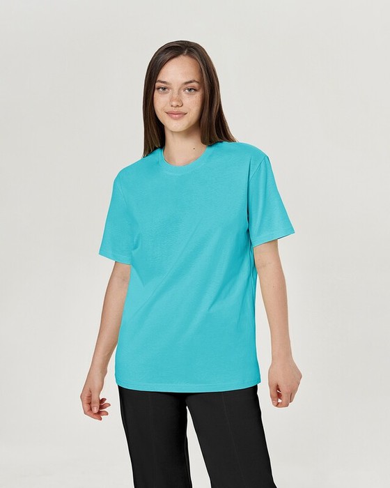 Boyfriend крой, укрепление по горловине спинки, круглый вырез. Горловина рибана. Отстрочка по горловине переда