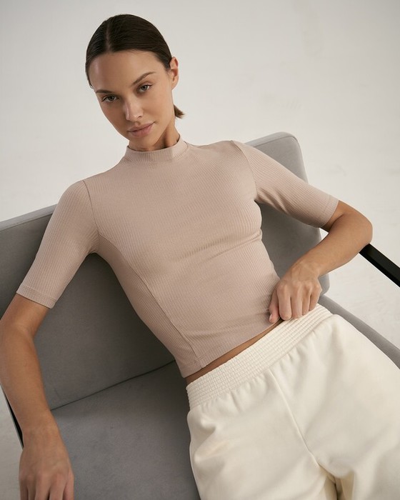 Укороченная футболка, облегающего силуэта. Притачная стойка.